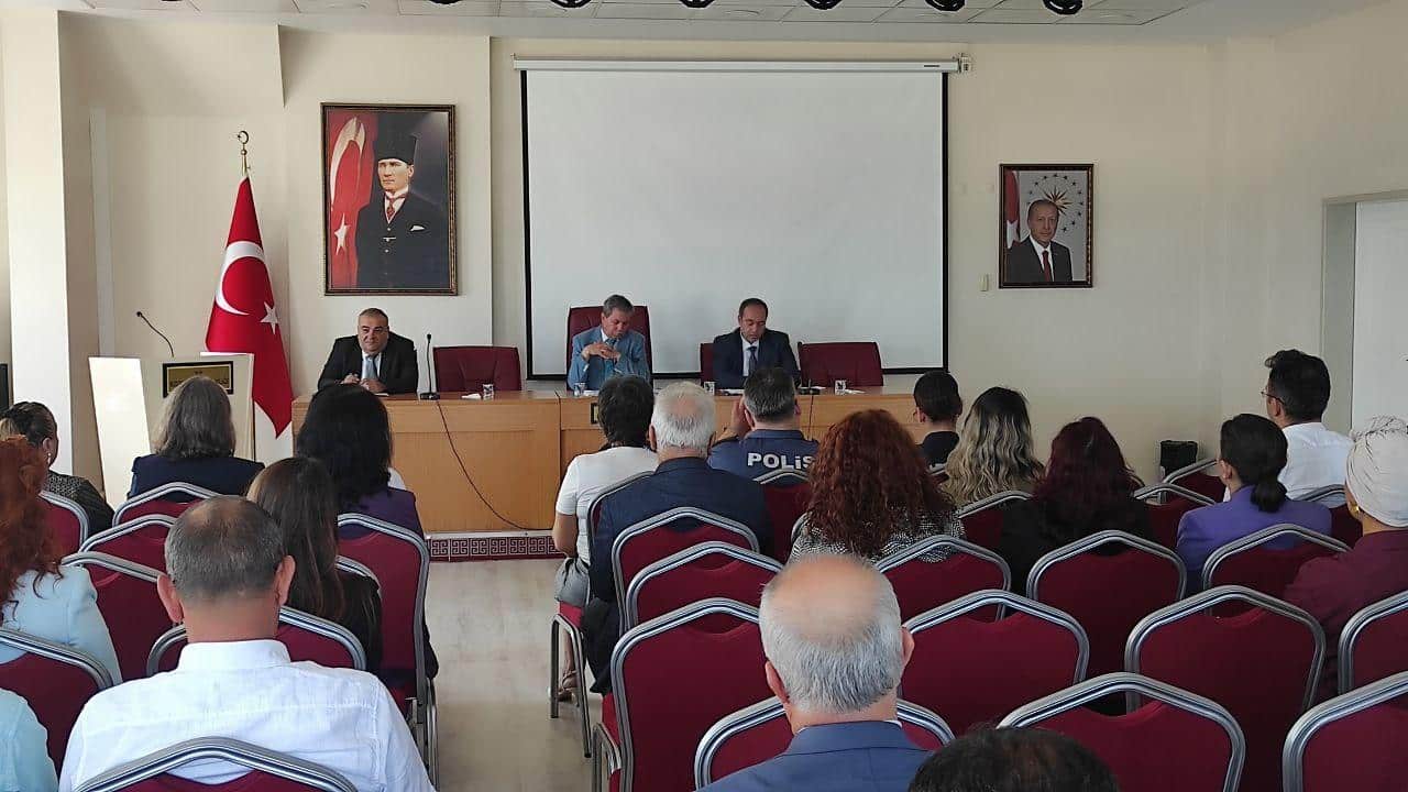 9 Eylül 2025 Salı günü önce, Kaymakamlık Makam Toplantı Salonunda İlçe Kaymakamımız Hüseyin ECE Başkanlığında, İçişleri Bakanlığı İller İdaresi Genel Müdürlüğünün talimat yazıları gereği, Kaymakamlığımız Hükümet Konağı 4. Kat Köksal Toptan Konferans Salonunda İlçe Kaymakamımız Hüseyin ECE Başkanlığında, İlçe Millî Eğitim Müdürümüz İsmail AKSOY ve ilçe daire amirleri, okul yöneticileri, okul aile birliği başkanları, okul servis şoförleri ve eğitimdeki diğer paydaşlarımızın katılımlarıyla 2025-2026 Eğitim Öğretim Yılı 1. Dönem Tedbirleri toplantısı yapıldı.